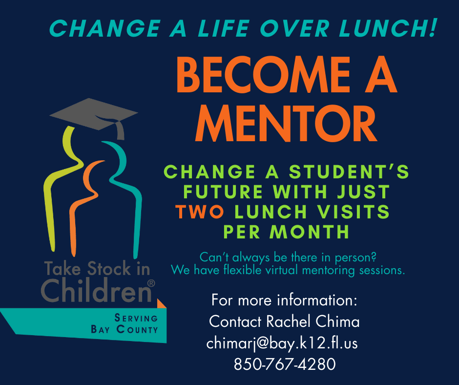 Bay Education Foundation is recruiting mentors for our Take Stock in Children program, and we’d love our Chamber partners to join us. Just two lunches a month can help a Bay District Schools student build confidence in their dreams and stay on track for college and career success. Training and support are provided - you bring consistency and encouragement.
